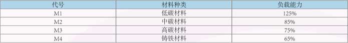 負(fù)載能力與材質(zhì)種類換算表